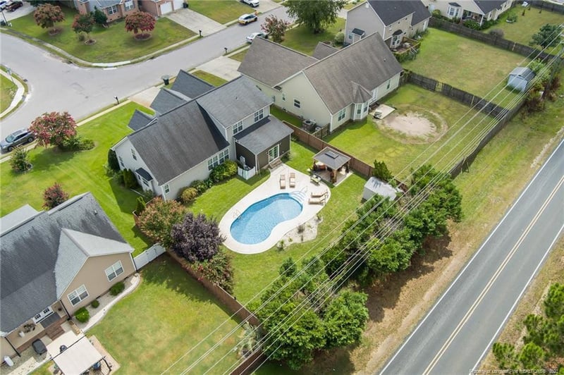 Listing details for 5732 Gentleman Dr, Hope Mills, NC 28348 : Welcome home to your own private oasis; transporting you to a tranquil haven with a simple dip of your toes into the cool embrace of the pool. You’ll feel almost as if you've been whisked away to a secluded resort. Step inside to an inviting sanctuary where cathedral ceilings soar overhead, creating an open airy ambiance. The bohemian inspired dining area seamlessly connects, setting the stage for soulful celebrations and shared meals with loved ones. Continue the journey through this enchanting home and discover a rare 1st floor master bedroom. This primary suite is the epitome of relaxation, complete with an elegant en-suite bathroom. The large soaking tub takes center stage, jetted to perfection, a beacon of relaxation after a long day. Travel upstairs to explore an overlook to the heart of the home. Roam down the hall to find four additional bedrooms, plus a spacious bonus room. Perfection awaits and the possibilities are endless in this ever enchanting home. heart of the home. Roam down the hall to find four additional bedrooms, plus a spacious bonus room. Perfection awaits and the possibilities are endless in this ever enchanting home.