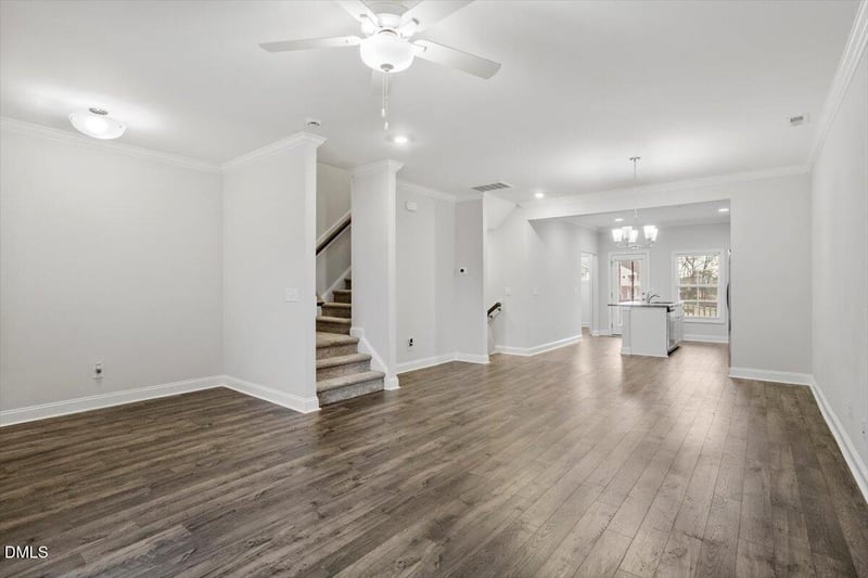 Listing details for 577 Forestville Rd, Wake Forest, NC 27587 : Beautifully maintained brick townhome offering 4 bedrooms and 3.5 baths with a thoughtful, flexible floor plan. The lower level features a versatile flex space and a full bedroom with full bath—ideal for guests, a home office, or multi-generational living. The main level is open and bright, filled with natural light and highlighted by gleaming LVP flooring throughout the living, dining, and kitchen areas. The spacious kitchen boasts granite countertops, a large island, and ample cabinetry—perfect for everyday living and entertaining. Enjoy private balconies with additional storage on the main level and off the primary suite on the third floor. Complete with a 2-car garage, this well-cared-for home is located in a desirable community featuring a dog park and convenient access to nearby amenities.
