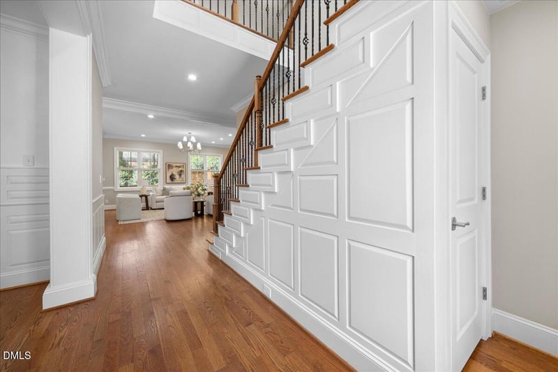 Listing details for 5801 Bramblewood Dr, Raleigh, NC 27612 : Custom modern luxury home in Midtown, ideally positioned between Crabtree and North Hills on a private cul-de-sac, offering the perfect blend of convenience and refined living. This thoughtfully designed residence showcases upgraded exterior uplighting, hand-scraped hardwood floors, and exceptional craftsmanship throughout. The gourmet kitchen is a true centerpiece, featuring a JennAir gas range, pot filler, wall oven, and a stunning quartzite island, all complemented by extensive custom millwork and meticulous attention to detail at every turn. Designed with flexibility in mind, the home offers two primary bedroom options on the main level perfect for multi-generational living or added convenience. Multiple office spaces and a spacious bonus room with French doors provide ideal work-from-home or study environments. Two laundry rooms add everyday convenience and functionality. Built with superior construction standards, including 2x6 exterior wall framing and a sealed crawl space, this home delivers both efficiency and durability. Enjoy a prime lifestyle location just minutes and even walking distance to Harris Teeter, Shelley Lake, and some of Raleigh's best shopping, dining, and outdoor amenities. A rare opportunity to own a truly custom, detail-driven modern home in one of Midtown's most desirable locations.