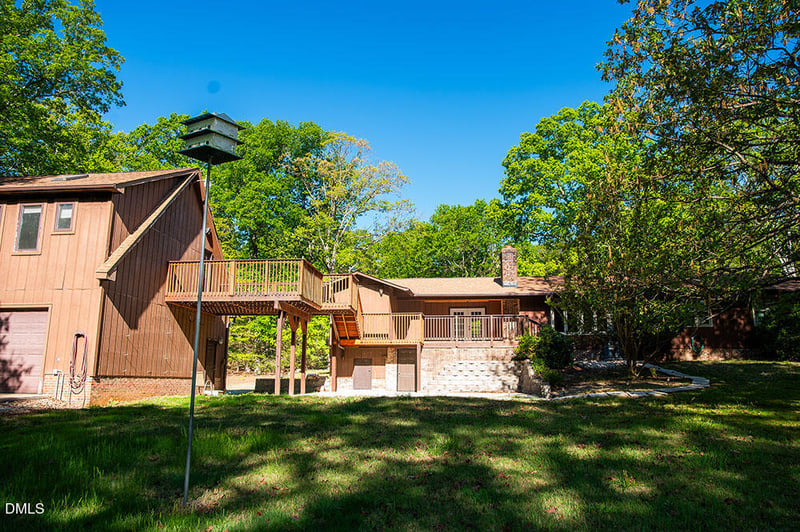 Listing details for 5812 Altrada Dr, Durham, NC 27712 : Situated on a desirable corner lot just outside of Durham, this unique property offers both space and functionality. A circular driveway provides easy access and impressive curb appeal, while the dual-sided drive-thru garage doors add convenience and versatility. The home includes and additional lot, offering extra room to expand or entertain. Enjoy outdoor living with a covered back patio and private balcony, perfect for relaxing or hosting guests. Ideally located for a balance of privacy and accessibility, this property presents a rare opportunity with exceptional potential.