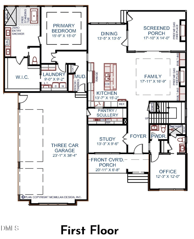 The main-level primary suite serves as a luxurious retreat, complete with wide-plank hardwood floors and an elegant tray ceiling. The spa-inspired en-suite bath showcases a stained dual vanity with quartz countertops and designer sconces, along with a beautifully designed wet area featuring a zero-entry tiled shower with frameless glass and a freestanding soaking tub. A spacious walk-in closet provides abundant storage and offers direct access to the laundry room for added convenience.
