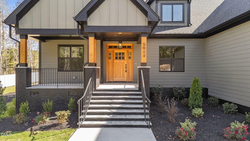 Listing details for 5904 Tranquil Cv, Youngsville, NC 27596 : MOVE IN READY Package of blinds in fridge available!2025 PARADE OF HOMES SILVER WINNER--Custom Built by Genesis Building Company on the ultra-private cul-de-sac community of Tranquil Cove with NO HOA! Ranch plan with fully fenced-in backyard with almond vinyl privacy fencing! Upstairs game room and full bath. 3-CAR GARAGE! Hardwood flooring spans throughout the main living areas with upgraded trim and elegant finishes throughout! Kitchen: features a large quartz island with barstool seating and designer pendants, custom white painted cabinetry, ZLINE stainless steel appliance package & spacious walk-in pantry. Primary suite: offers vaulted ceiling with painted beams, hardwood flooring & large triple window. Luxurious primary bath: with designer tile flooring, stained dual vanity with quartz top, spa-style tile to ceiling surround shower with bench and huge walk in closet with built-ins. Family Room: offers a fireplace with floating mantle and custom built-ins and glass sliders to the rear screened porch with linear fireplace and above-mounted TV! Private study with french door entry and upstairs walk-in storage for future expansion!
