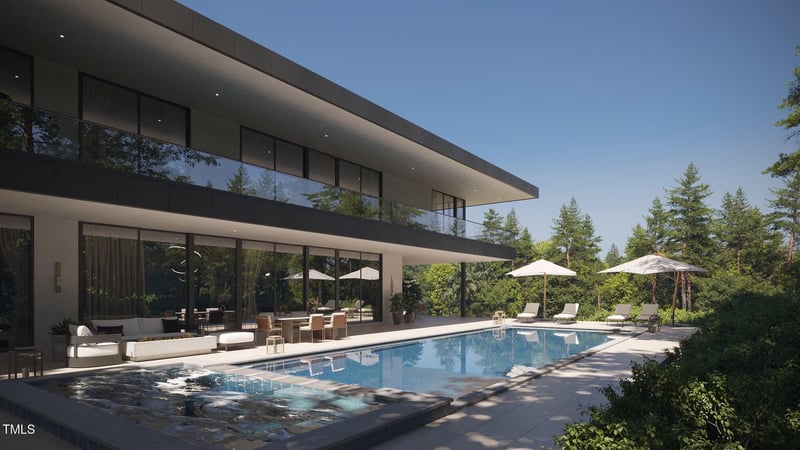 Listing details for 5909 Tower Grove Dr, Raleigh, NC 27614 : Introducing the third in a series of Raleigh's newest and most prestigious collection of 13 architecturally significant, turn-key, fully furnished, private estates nestled within a gated community. This corner lot residence is built with a concrete and steel structure to provide the highest levels of fire resistance and structural performance. Optional furnishing package, styled by California-based interior designer, Lynda Murray, for a turn-key experience. Step inside and experience the stunning design of organic materials, European understatement and walls of sound proof high security glass. Below grade, 8 car, climate controlled garage- perfect for automobile enthusiasts. Tranquil outdoor space, a wellness center, and a 92 foot wide cantilevered balcony overlooking the custom pool are just a few of the Class A amenities offered. Hand selected imported marble slabs for a unique, one of a kind residence. Owners retreat offers a sitting area, fireplace, and luxury tub cut from a single block of stone. The gourmet kitchen boasts sleek lines, European cabinetry, and a large full working scullery. Additional flex spaces to fit your needs. This gated community offers extra privacy with an 8ft street lined hedge. Get ready to Indulge in the pinnacle of luxury living at this Glenhill residence. 13 Homesites- Developed and constructed by Bison Homes. All materials and finishes have been carefully selected and curated for ultra-luxury, effortless, ownership experience.