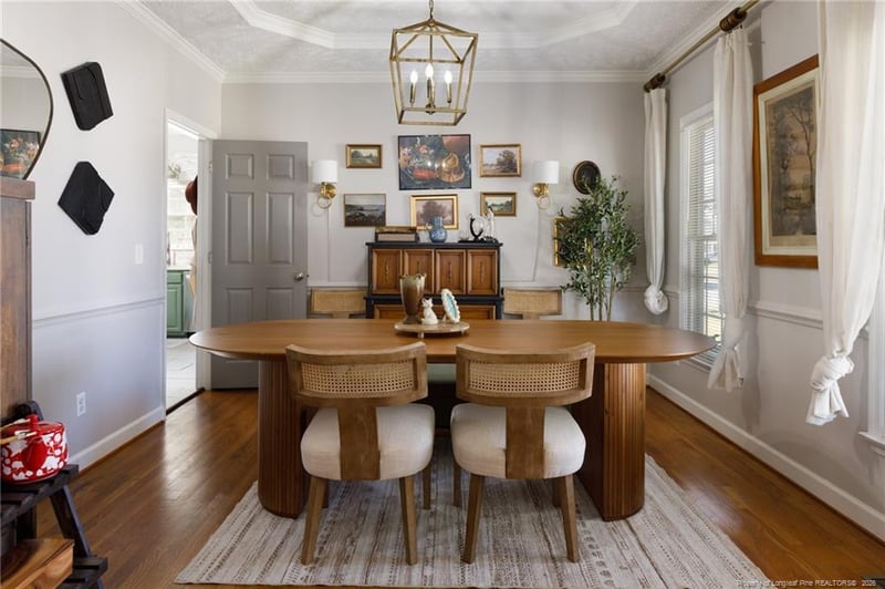 Listing details for 5920 Sunday Dr, Fayetteville, NC 28306 : KENSINGTON VILLAGE 4BR/2.5BA $400,000 This well-maintained corner lot home will delight you with all it's charm! Enjoy a spacious living area filled with natural light. The kitchen boasts ample cabinetry, stainless steel appliances and quartz countertops. Formal dining as well as a study offer plenty of living/entertaining space. Several tasteful wall designs make this space feel luxurious and unique. Storage is abundant throughout! Primary bedroom downstairs with lovely en-suite and his & her closets. There are three additional bedrooms on the second floor as well as a loft area. The FROG offers additional opportunity to spread out and has it's own half bath. The outside shed is fully wired. A beautifully landscaped yard and large pool deck are perfect for entertaining! Located in a desirable area with easy access to shopping, dining, and major routes, this home offers the perfect blend of peaceful living and everyday convenience.