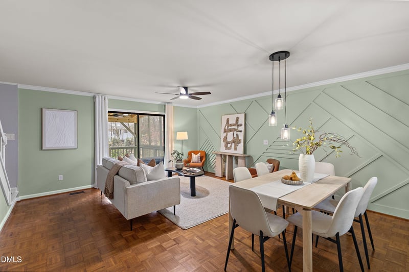Listing details for 5937 Dixon Dr, Raleigh, NC 27609 : Charming Townhome in Highly Desirable Mid-Town Raleigh Location: Comfort, style and convenience can be found in this beautifully updated townhome nestled in one of Raleigh's most sought after neighborhoods. $100k in upgrades: kitchen, screen porch, primary bath, flooring, interior paint, decorative wall, electrical and ceilings. Renovated kitchen with expanded counter space, soft-close cabinetry, stainless steel appliances - including refrigerator, a stylish tile backsplash, recessed lighting and pantry. The main living area welcomes you with classic parquet flooring, modern light fixtures, smooth ceilings and thoughtful electrical updates that include a dining table chandelier, ceiling fan, additional receptacles and whole-house surge protection, all blended seamlessly with an innovative shiplap molding feature that elevates the space. A standout highlight is the screened porch, perfectly positioned to overlook a private serene setting ideal for morning coffee, relaxed gatherings with friends or simply enjoying nature's quiet charm. Upstairs has new flooring. The updated primary suite is a perfect retreat with smooth ceilings, fresh lighting, and abundant natural light from double doors leading to a Juliet balcony. Primary bath has been updated with a new tile shower that includes a lifetime warranty a modern vanity and elegant tile flooring. The versatile lower level with separate entrance and patio offers many flexible living options perfect for guests, home office or rec room - complete with bath, dedicated laundry room and exceptional storage. Additional perks include two assigned parking spaces and access to a community pool. City water is included in HOA dues. Ideally located within 1.2 miles to I-440 and North Hills' premier shopping, dining and entertainment options. This townhome puts everything you want at your fingertips while tucked away in a peaceful, established setting.