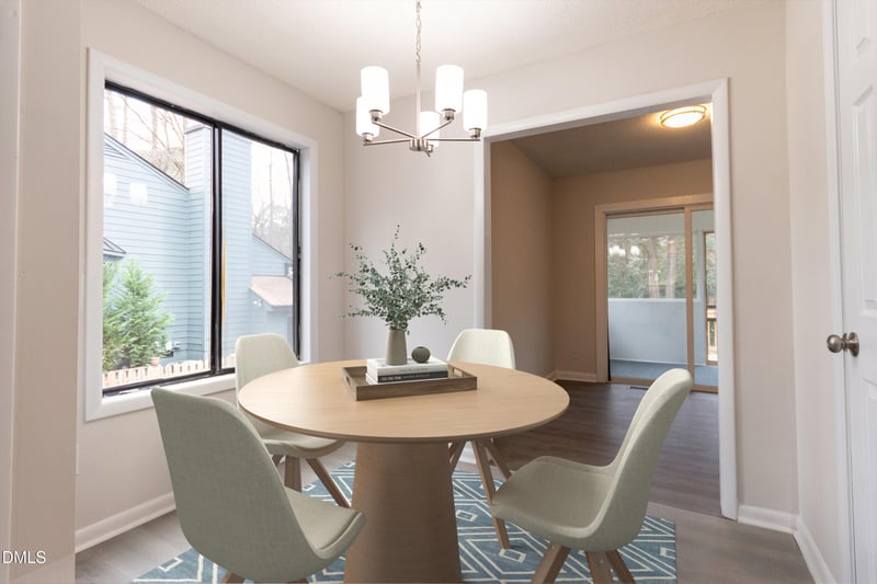 Listing details for 6001 Applewood Ln, Raleigh, NC 27609 : $5,000 Seller Paid Closing Costs with Acceptable Offer! You are not dreaming! You have found a Raleigh home well under 350k, with no HOA dues, FIVE minutes from North Hills, ten minutes from Crabtree Mall, eight minutes from adorable Lafayette Village, eight minutes from Whole Foods on Six Forks Road, ten minutes to downtown Raleigh, and twenty minutes to RDU airport. This 2 bedroom, 2.5 bath fully remodeled townhome sits in a cul-de-sac at 6001 Applewood Drive, right off of Spring Forest Road. This is the kind of backyard space that most people only dream about when buying a townhome. Level and deep, with the ability to fence, have a little garden, plant flowers, or throw a ball for a pet. A new driveway greets you in the front. New siding, fresh paint, everything feels modern and up to date. Inside you will find vinyl plank flooring, a kitchen updated with white cabinets, granite counters and stainless appliances. You have a breakfast area, and a seperate space that could be a formal dining room, office, or reading area. Step down into the living room with a wood burning fireplace, and a brick ledge perfect for your house plant addiction. Upstairs you will find two generously sized bedrooms, each with its own fully renovated bath. Lots of closet space, and a pull down attic. You can also spend time on your screened in porch or large deck. If you enjoy coming home to a quiet peaceful spot, with trees and grass you can sink your feet into, but you still want to be minutes from your favorite North Hills restaurant, or your favorite Raleigh park, this may be the right home for you. Come and check it out!