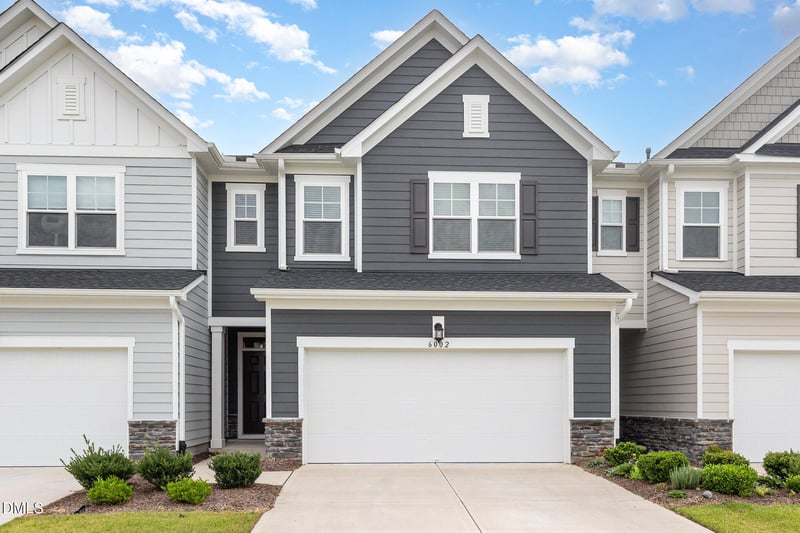 Listing details for 6002 Renew Pl, Raleigh, NC 27616 : Welcome to 6002 Renew Place in Raleigh's vibrant 5401 North community! This nearly new 3-bedroom, 2.5-bath with open loft townhome has 1,959 sq ft of thoughtfully designed living space. Bright open main level with great room, dining area, and kitchen featuring stainless steel appliances and gas range. Upstairs offers a versatile loft and 3 bedrooms, including the primary suite with tray ceiling, walk-in closet, and private bath. The fenced backyard with screened porch has a terrific view! Don't miss the attached 2 car garage, and owner upgrades including vinyl privacy fence, custom blinds, updated lighting, and multiple ceiling fans. Located on a quiet street and with direct access to the scenic Neuse River Greenway, it's perfect for walking, biking, or unwinding in nature. 5401 North has incredible amenities, including a pool, fitness center, playgrounds, a dog park, a local coffee shop, a brewery and more! With its prime location near I-540, commuting and access to shopping and dining are easy.
