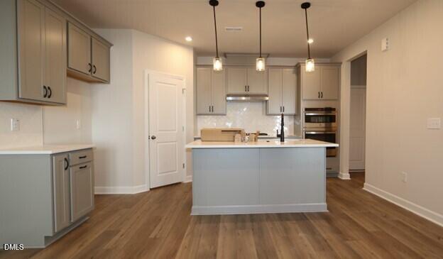 This spacious 3-bedroom, 2.5-bath townhome features an attached 2-car garage and a bright, open first floor with kitchen, dining, and family room. The upgraded gourmet kitchen boasts upgraded gray cabinets, built-in wall oven, quartz countertops, a large island, pantry, and pendant lighting, all complemented by EVP flooring throughout.