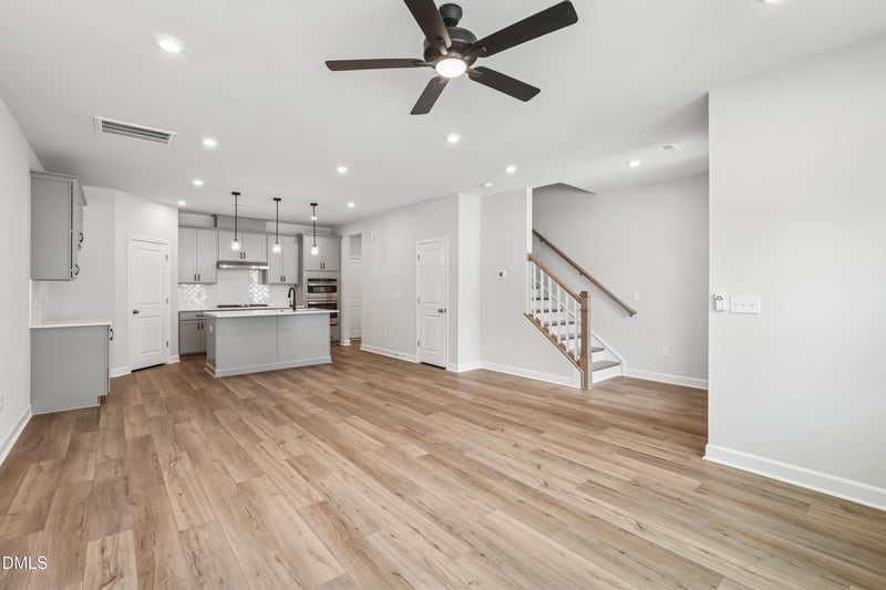 Listing details for 606 Brackenberry Al, Wake Forest, NC 27587 : Welcome to the SAMPSON! This spacious 3-bedroom, 2.5-bath townhome features an attached 2-car garage and a bright, open first floor with kitchen, dining, and family room. The upgraded gourmet kitchen boasts upgraded gray cabinets, built-in wall oven, quartz countertops, a large island, pantry, and pendant lighting, all complemented by EVP flooring throughout. The oak tread staircase leads upstairs to a versatile loft - perfect for a home office or additional entertaining space. The primary suite offers a tiled shower, bench and large walk-in closet, while two additional bedrooms, a full bath, and laundry room complete the second floor. A convenient drop zone at the garage entry adds everyday functionality. Additional highlights include 9-ft ceilings on all floors, tankless gas water heater, Ring doorbell, Schlage smart lock, EV charging outlet, and whole-house surge protector. Enjoy resort-style living in the community with a 15-acre lake, pool, clubhouse, parks, and trails - perfect for active, connected living!