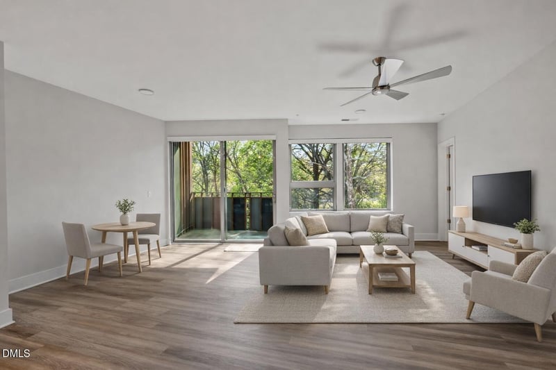Listing details for 610 Trent Dr #306, Durham, NC 27705 : Urban living at its best! This rare 3-bedroom, 2-bath condo on the third floor of Bull City Commons offers a large open floorplan Flooded with natural light and featuring peaceful treetop views. Step out onto your private balcony overlooking the serene community garden, or relax in the flexible, open living spaces. The updated kitchen boasts quartz countertops and sleek cabinetry, while recent upgrades include new luxury vinyl plank (LVP) flooring and fresh paint throughout for a clean, modern feel. Bull City Commons combines private ownership with a vibrant, community-oriented lifestyle. Residents enjoy access to excellent shared amenities, including a large kitchen and dining area, multiple gathering rooms, a covered porch, a beautiful garden with fire pit, lobby lounge, workshop, extra storage, on-site laundry, secure parking with EV charging stations, and rooftop solar powering the common areas. Ideally located in Old West Durham, this home is within walking distance to Sarah P. Duke Gardens, Duke University, vibrant 9th Street shops and restaurants, and just minutes from downtown Durham. Don't miss this fantastic opportunity to own in one of Durham's most convenient and unique communities. Contact the listing agent today for more information!