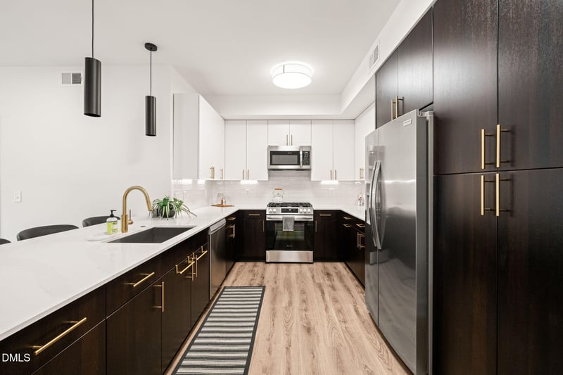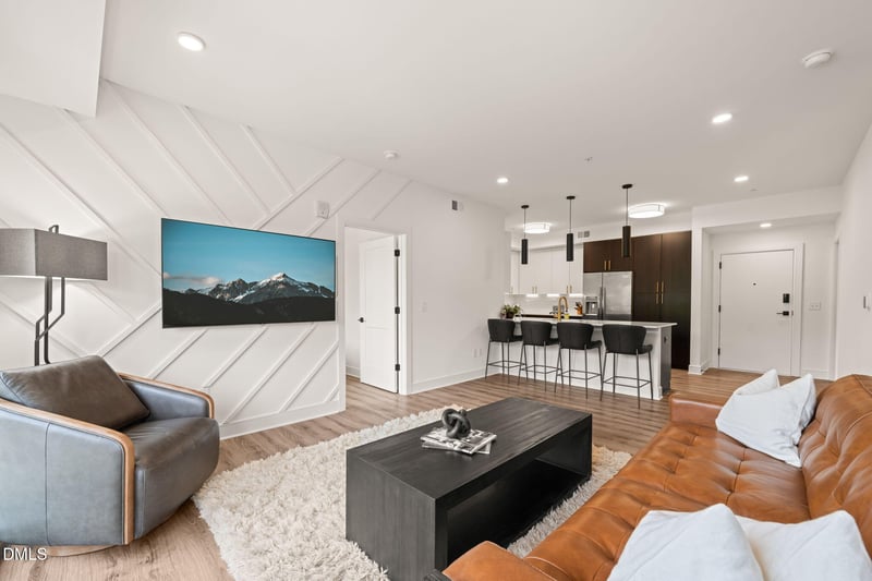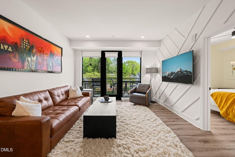 Listing details for 615 Peace St #, 207, Raleigh, NC 27605 : Prioritize your proximity, and claim the luxury you deserve at 615 Peace #207. Modern maintenance-free living meets the vibrancy of DTR's Glenwood South and Smoky Hollow neighborhood in this 977 sq ft 2bd 2ba residence. Move to one of Raleigh's hot spots and own a smooth rooftop skyline view along with the building's largest PRIVATE PARKING space. Perched on Peace Street, minutes from the Village District, 615's bold masonry and sleek mixed-metal exterior blends seamlessly with the neighborhood's charm while bringing a fresh, modern edge. Inside, industrial-inspired finishes like warm woods, gold accents, and brushed metal contrast with sun-drenched, open and airy interiors. This is an urban aesthetic that's as sharp as it is inviting. Suited for those who savor simple luxuries and seamless comfort. Your new 615 Peace home isn't just a place to live, it's a front-row seat to the best of Downtown Raleigh. Morning coffee on your balcony or dinner and gatherings on one of three expansive rooftop lounges. Welcome home to exactly what you deserve.