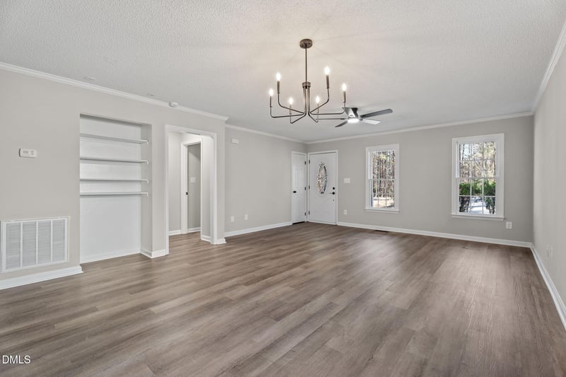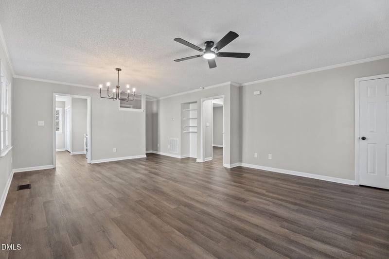 Listing details for 619 Industrial Dr, Wendell, NC 27591 : This beautifully updated ranch-style home offers three bedrooms and two bathrooms, perfectly situated on a spacious corner lot just minutes from the heart of Wendell. Step inside to find abundant natural light and a fresh, modern feel with all new flooring, paint, and light fixtures throughout!
