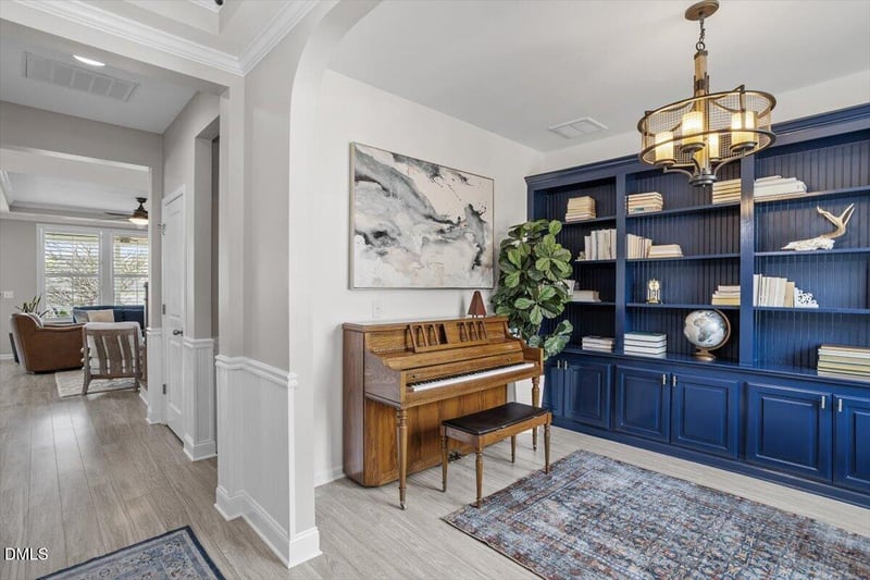 Listing details for 630 Botan Way, Hillsborough, NC 27278 : Tucked into a peaceful corner of highly desirable Waterstone Estates, this beautifully appointed home offers the perfect blend of style, comfort, and convenience. The open floor plan features a dedicated main-level office and light-filled living spaces enhanced by plantation shutters, custom built-ins, accent walls, and elegant trim and wainscoting details. A spacious dining area flows seamlessly to the gourmet kitchen and family room. The screened porch and paver patio overlook the fenced backyard--perfect for entertaining or unwinding outdoors. Hardwood-style laminate flooring runs throughout both the first and second floors, creating a cohesive and modern feel. The third floor bedroom/bonus with en-suite bath provides such flexibility! Walk-in attic plus massive garage shelves provide generous storage! Neighborhood amenities (inlcuding a pool!) are the icing on the cake. Ideally located just minutes from UNC Hospitals, Durham Tech, downtown Hillsborough, Chapel Hill, Durham, and easy access to I-40 and I-85.