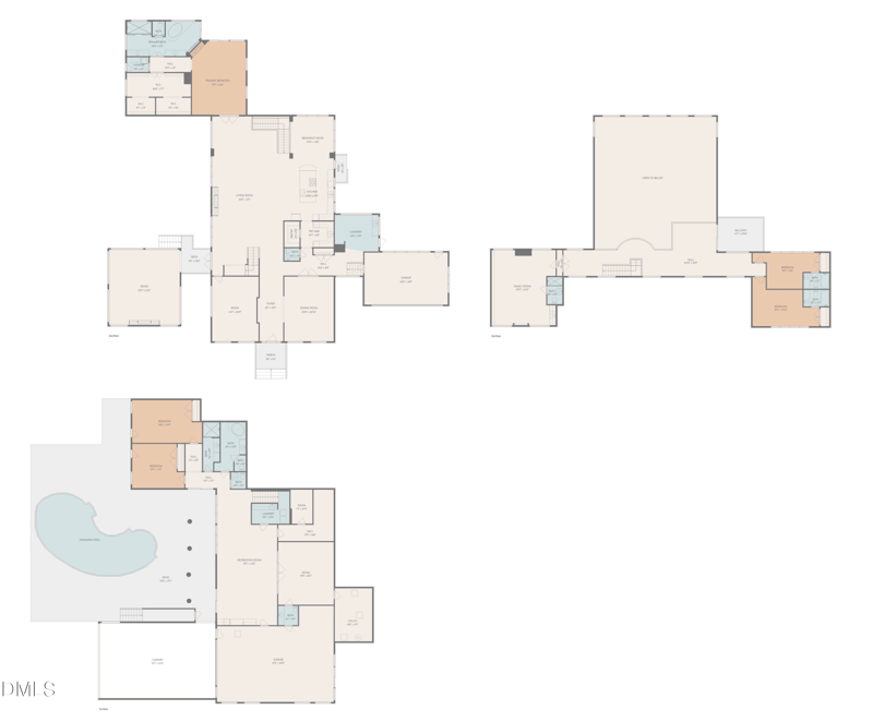Listing details for 6309 Wakefalls Dr, Wake Forest, NC 27587 : An extraordinary custom built estate w/ gorgeous swimming pool spanning nearly 9000 square feet in the exclusive sought-after Wakefield Estates. Gated driveway entrance w/ scenic drive into the vast circular driveway, surrounded by over 8 acres of wooded land w/ rolling hills & tranquil creeks all around sets the scene of absolute privacy and expansive luxury living. Walk up those limestone steps into the foyer, immediately greeted by the large formal dining room, opening up to the family/great room w/ vaulted cathedral ceilings, gas granite fireplace w/ wood mantel, and access to office/den & elevated covered patio w/ fireplace. Gourmet kitchen features custom cherry-wood beams & cabinets, large granite island equipped w/ 6-burner gas range, 2 wall ovens & warming drawer, breakfast area, 2 dishwashers, subzero refrigerator, wine fridge, additional mini fridge & huge butlers pantry w/ wet bar, ice maker, and additional freezer. Main level primary suite w/ private patio & double-sided wood fireplace looking into spa bath w/ steam shower, jetted soaking tub, dual vanity, and black marble accents, custom walk-in-closet, and your own private laundry room w/ a juliet balcony. A zen-style powder room, pottery/art/studio room, and 2-car garage completes the main level. Upstairs includes a loft area overlooking the family/great room w/ access to 2nd-floor private patio, theatre room w/ wet bar + mini fridge + full bath, and 2 bedrooms w/ en-suite baths. Fully finished walk-out basement features an expansive recreation area w/ gas stone fireplace + custom cabinets + wet bar w/ wine fridge, gym room, library/flex room, laundry room w/ sink, 2 bedrooms w/ walk-out access to pool/patio, 2 half baths, full bath w/ jetted soaking tub, cabana bath w/ steam shower, and tandem 4-car garage w/ access to private tranquil/garden area. Expansive fenced-in back patio with deep swimming pool + hot spa and outdoor BBQ grill. This property features extraordinary indoor & outdoor living, with multiple patio areas accessed through all around this home, surround sound, central vac, storage, full house generator, and so much more. Homeowners can join Wakefield Plantation for golf, neighborhood event center and putting green. Horse boarding (stable and pasture) available nearby for a fee. Don't miss your chance, schedule a showing today!