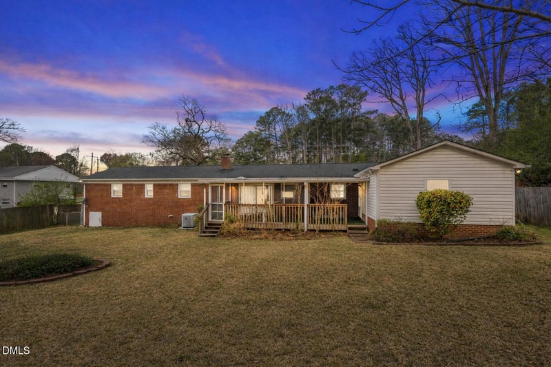 Listing details for 637 Buck Jones Rd, Raleigh, NC 27606 : Welcome to 637 Buck Jones Road in Raleigh! This north-facing ranch home is ideally situated on a spacious .69-acre homesite in an unbeatable location just minutes from The Fenton in Cary, for premier dining, shopping, and entertainment, with easy access to Lake Crabtree trails, Dorothea Dix Park, and Downtown Raleigh's top museums and attractions. Offering 4 bedrooms, 3 full baths, and 2,394 square feet, this home features a versatile layout with generous living spaces and great indoor-outdoor potential. Hardwood floors add warmth and character to the main living area, while the expansive kitchen offers abundant cabinetry, prep space, and a breakfast bar overlooking the adjoining living area with a brick fireplace. A large additional living/flex space provides room to spread out, and the screened porch overlooks the private backyard with mature trees, open lawn space, and a detached storage shed. With its combination of space, functionality, and prime location, this is a wonderful opportunity in the heart of the Triangle.