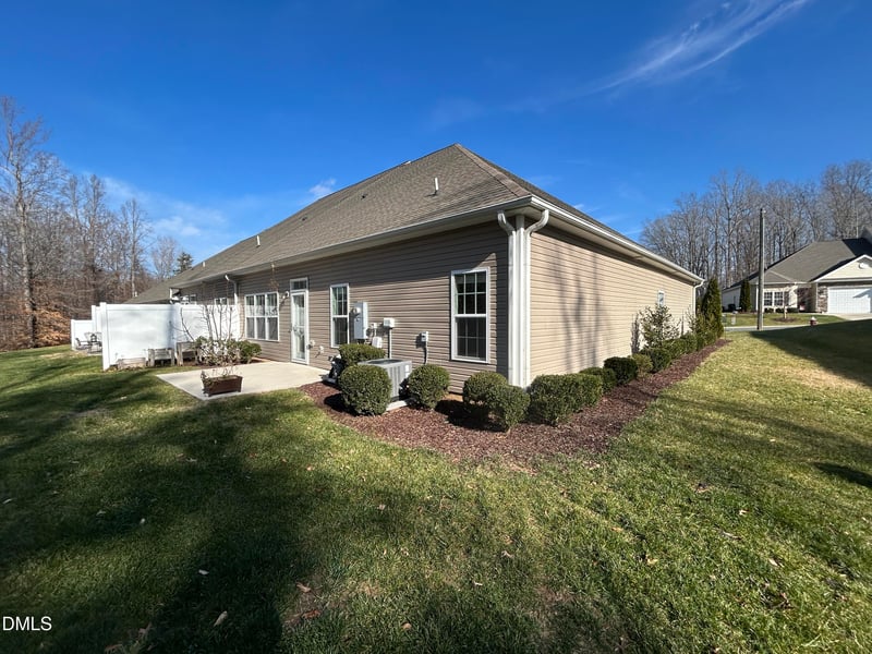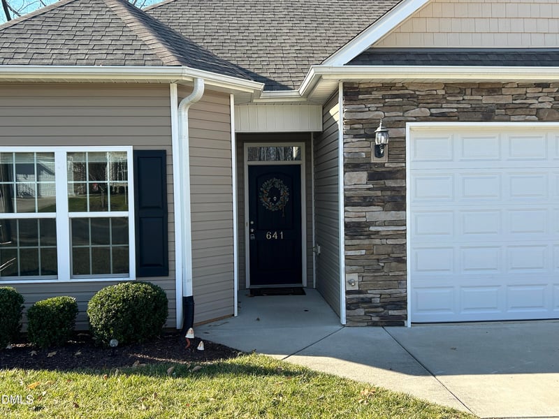 Listing details for 641 Retriever Ln, Mebane, NC 27302 : Beautiful one level , two car garage townhome in popular Village at Lake Michael. Enjoy quartz counter tops, tiled kitchen backsplash, luxury vinyl flooring, open floor plan, 2 full baths, backs to woods. Convenient location, walk to Lake Michael, view of neighborhood pond, short drive to historic downtown Mebane, I-40/85 and Tanger Outlets. HOA includes clubhouse, pool, gym, exterior maintenance, irrigated lawn areas. Absolutely move in ready for you.