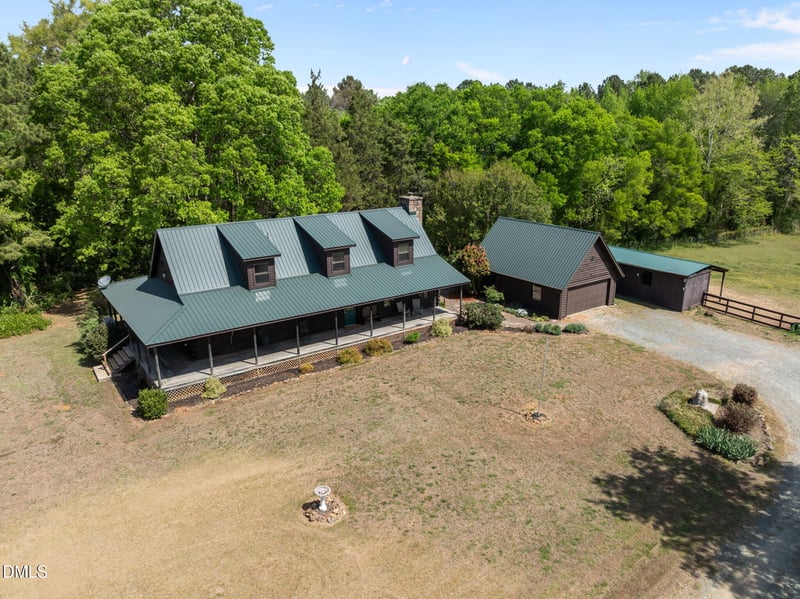 Listing details for 643 Old Stone House Rd, Chapel Hill, NC 27516 : Beautiful horse farm with idyllic log home sits on 23 acres of pastoral beauty! This perfect combination of pasture and woods in the Collins Mountain community of Chatham County offers a mostly level & partially-cleared landscape with fenced-pasture & 3-stall run-in barn and garden shed. The log home features a three-sided wrap around covered porch that takes you back in time as you sit, rock, sip and enjoy the peaceful surroundings. 3 bedrooms, 2 1/2 baths with exposed beams, log interior walls, wide-plank pine floors, dormers, and stone fireplace with gas stove insert. Main floor primary bedroom & bath, plus 2 very large bedrooms on second floor (bunk room, anyone?) Painted metal roof and a 2-car detached garage with shop. Possibility to create 1 or 2 more lots per covenants. Old Stone House Road is a well-maintained private road. With only part of the property cleared as pasture, there are plenty of woods for the nature lover, bird-watching, or room to grow. All of this only 15 minutes from Chapel Hill and Pittsboro! Come enjoy life outside, open spaces, bring your horses, and live the dream.