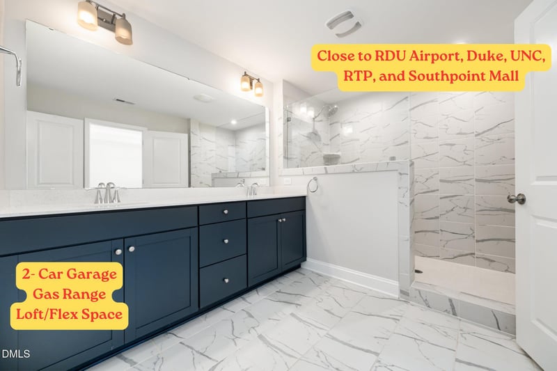 Listing details for 6519 Amber Springs Dr, Durham, NC 27713 : *Ask the listing agent about lender-paid concession or 1% lower interest rate for the 1st year for qualified buyers!* Washer, Dryer, and Fridge included!! This home lives like new with an1st floor layout and perfectly located for modern living, convenient access to Southpoint Mall, RTP, RDU airport, and I40/540. The kitchen features elegant quartz countertops, a large island, walk-in pantry and a gas range. Upstairs there are 3 bedrooms and a flex loft area. The primary bedroom has a tray ceiling, complete with an impressive master bathroom, and a fully tiled large walk-in shower. The outdoor space is equally impressive, with a charming back patio that offers the ideal setting for morning coffee or evening relaxation. Schedule your private tour today before this gem is gone!
