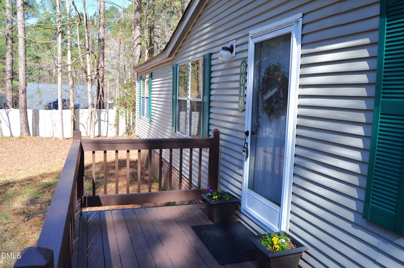 Listing details for 6616 Crowned Ct, Zebulon, NC 27597 : Move-in ready 3BR/2BA home on 0.69 acres with no HOA. Recently updated with new solid wood kitchen cabinets, new bathroom vanities, new LVP flooring in primary bedroom, living room and family room, fresh paint throughout. Roof replaced 2017, HVAC replaced 2021, well pump replaced 2021, and new water heater installed May 2025. Nothing left to do but move in. Deck overlooks a private wooded lot with room to breathe. Conveniently located just minutes to Five County Stadium, Zebulon Community Park, grocery stores, and dining, all within 8 miles. Come see it before it's gone.