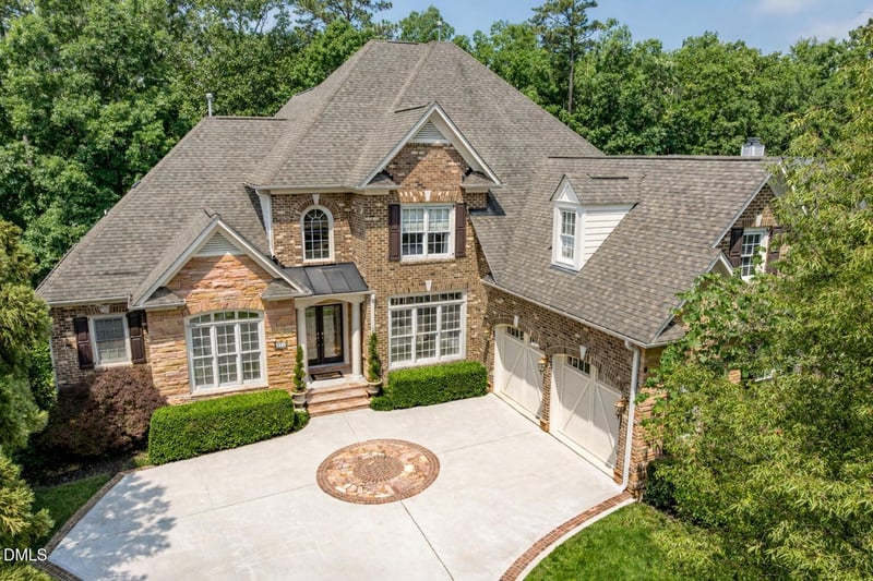 Listing details for 671 Bear Tree Creek, Chapel Hill, NC 27517 : Welcome to refined luxury living in The Preserve at Jordan Lake, one of the most sought-after gated golf course communities in Chapel Hill, North Carolina. Located in highly desirable Chatham County, this premier neighborhood blends resort-style amenities, natural beauty, and elegant custom homes just minutes from Jordan Lake, University of North Carolina at Chapel Hill, Duke University, Apex, Cary, and Raleigh-Durham International Airport. Perfectly positioned on a level, wooded lot, this exceptional residence offers timeless architectural design, sophisticated finishes, and flexible living spaces designed for both elevated entertaining and effortless everyday living. Hardwood floors span the entire main level, complemented by arched doorways, detailed wainscoting, tray and coffered ceilings, and custom millwork throughout, while natural light fills the open-concept floor plan to create a warm yet refined atmosphere.