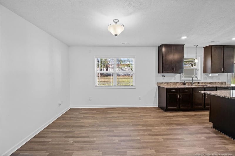 Listing details for 6915 Wickersham Rd, Fayetteville, NC 28314 : Located in Cliffdale West, this well-appointed home offers a great opportunity to own in an established West Fayetteville neighborhood. Set on an almost half-acre lot, this property combines comfort, space, and functionality with a thoughtfully designed floor plan. Vinyl flooring runs throughout the main living areas for both style and easy maintenance. The kitchen features granite countertops, stainless steel appliances, an island, and ample cabinet and storage space. It opens nicely to the living room, breakfast area, and an additional dining area or flex space to suit your lifestyle. All bedrooms feature carpet for added comfort. The primary suite includes a tub/shower combination, and both the primary and secondary bathrooms offer dual-sink vanities. Enjoy outdoor living from the covered back patio overlooking the spacious backyard.Home was professionally appraised prior to listing and value was determined to be $325,000.Preferred lender: Mutual Mortgage – Joe Spell (910) 964-1348, offering ZERO loan fees on VA loans! This one’s ready for you—schedule your private showing today and make it yours!