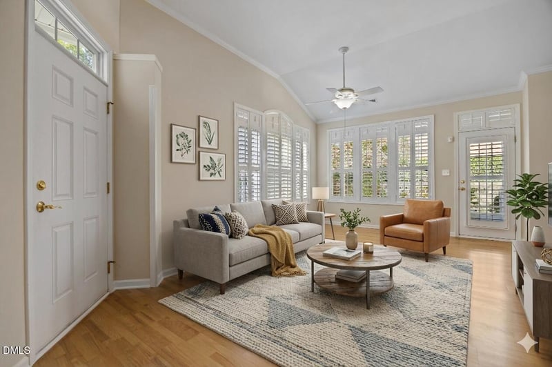 Listing details for 6941 Middleboro Dr, Raleigh, NC 27612 : The layout buyers keep asking for - first floor primary suite with an open floorplan in a dog friendly neighborhood - this one is very hard to find. This feshly painted 3-bedroom, 2.5-bath end-unit townhome with 2-car garage in North Raleigh offers 1,872 square feet built around a simple layout that more than works. Step inside through the covered side-entry porch and the home opens into a family room with a dining area that flows directly into the kitchen that anchors the space. An island and dinette area that keeps cooking, casual meals, and conversation connected. The living area stretches comfortably for everyday life or hosting, and tall ceilings amplify the sense of openness. Additional windows from this end unit bring in the natural light. The primary suite sits quietly on the first floor and includes a walk-in closet and a private bath with dual sinks, a soaking tub, and a separate shower. This makes daily routines simple and accessible without needing to climb stairs. Upstairs creates separation without wasting space. Two generously sized bedrooms sit on the second level alongside a flexible loft area that works well as a reading nook or work-from-home spot. A large walk-in attic provides real storage space--something townhomes often struggle to offer. Step outside and the patio extends the living area for morning coffee or evening downtime. The end-unit placement also allows for extra side and backyard space, giving this home a little more breathing room and sunshine for catching some rays or that outdoor potted garden. Behind the scenes, several major components have been updated: the roof, furnace and the natural gas water heater (~2022). Central air conditioning was installed in 2018. The home is connected to city water and sewer, uses natural gas and electricity, and includes a rare two-car garage with nicely finished floors--an increasingly hard-to-find feature in townhome communities. The location can't be beat. Shelley Lake Park and Lake Lynn Park are about 8-10 minutes away for miles of scenic greenway trails, while North Hills dining, Midtown Park, and Crabtree shopping are all within roughly a 10-minute drive. RDU Airport, Research Triangle Park, and downtown Raleigh remain easily accessible. This home delivers the features buyers hunt for but rarely find together: a true first-floor primary suite, a rare two-car garage, and an end-unit location with extra light and yard space. The side-entry front door adds character, tall ceilings open up the main living area, and a large walk-in attic solves the storage problem most townhomes have. Washer/dryer and refrigerator convey, and visitor parking sits right next door. Simple, practical, and hard to replicate. Come see it in person.