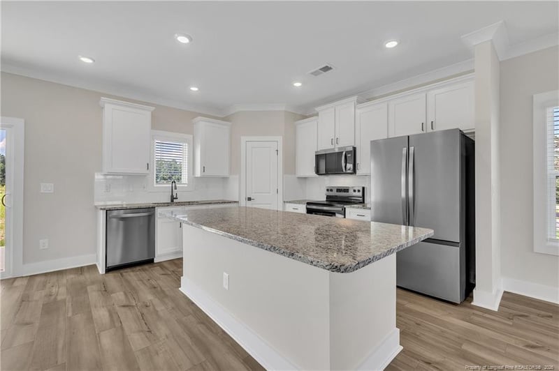 Listing details for 70 Camp Rock Rd, Lillington, NC 27546 : The Clayton is a 1st floor master on 0.69 acres!! Experience the perfect blend of modern convenience and timeless elegance with the Clayton floor plan at Boone Trail Village. This stunning two-story home is designed to complement your lifestyle with 3 bedrooms, 2.5 bathrooms, and exquisite architectural detailing, including stone accents on the exterior. Open Floorplan with dining area! The kitchen boasts a large island, granite counters, tile backsplash, 42" cabinets & SS appliances w/refrig. First floor master is tucked away at the back of the home for extra privacy. The suite includes a large WIC, double granite vanity and tile shower! Upstairs features 2 large bedrooms and full bath w/granite and tile shower! Enjoy coffee on your back deck! Plenty of storage in your 2-car garage!