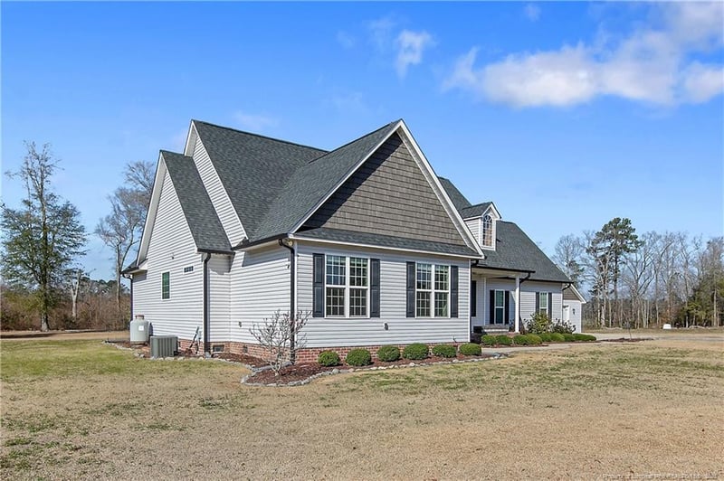 Listing details for 7136 Tabor Church Rd, Fayetteville, NC 28312 : RARE OPPORTUNITY FOR ACREAGE AND PRIVACY! Seller offering $4,000 use-as-you-choose—apply it toward closing costs or repairs—plus up to $500 home warranty. Experience peaceful country living on 2.5 acres of equestrian-friendly land, where a long private entry leads you to this spacious home designed for comfort and functionality. Inside, the home features 3 bedrooms, 2 bathrooms, and a large bonus room above one of the two-car garages, providing a total of four garage spaces—perfect for vehicles, storage, hobbies, a workshop, or home gym. The open interior showcases high ceilings and luxury vinyl plank flooring, creating a bright and inviting atmosphere throughout. The kitchen is ideal for both everyday living and entertaining, featuring granite countertops, stainless steel appliances, ample cabinetry, a formal dining area, and a convenient sit-up bar. The owner’s suite provides a relaxing retreat with a walk-in closet, garden tub, and tiled shower. Enjoy quiet mornings on the large front porch or unwind in the evening on the freshly painted covered back deck, perfect for taking in beautiful Carolina sunsets. The backyard also features a firepit area—ideal for gathering with friends and family under the Carolina night sky. Additional highlights include a whole-house water purification system private well (no water bill), spacious equipment shed, and a wall generator plug for added peace of mind.Bring your horses and enjoy the space, privacy, and charm of country living.