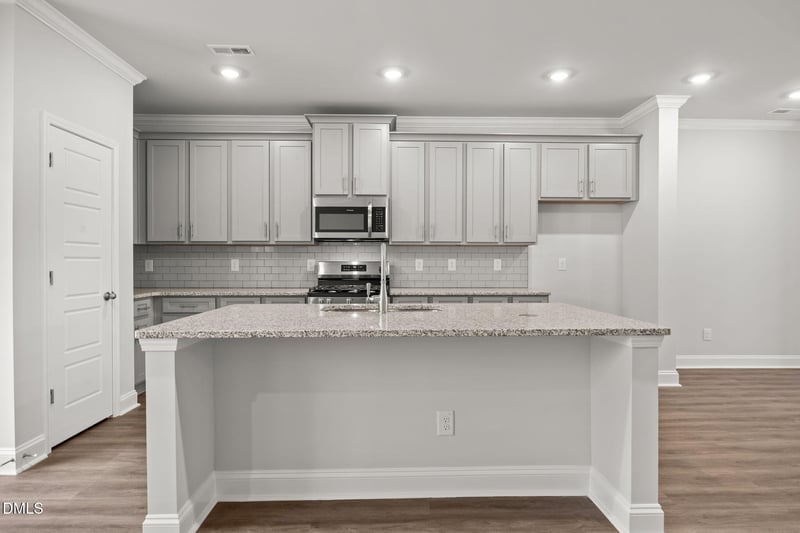 Listing details for 718 Winton Way #545, Wake Forest, NC 27587 : Built by McKinley Homes-- Situated in the heart of downtown with single family homes, townhomes, swimming pool and clubhouse with fitness center coming Summer 2026 and commercial space! Located inside city limits with city water & sewer. Minutes away from dining, shopping & Joyner Park! The Rocket plan-- with a 1-CAR DETACHED GARAGE! Offering upgraded LVP flooring throughout the main living! Stariway with open railing and wrought iron balusters. Kitchen: features 42'' custom cabinets with crown molding, soft close doors and brushed nickel hardware, timeless granite countertops, subway tile backsplash, stainless sink with brushed nickel faucet, large island with barstool seating, stainless appliances, crown molding, recessed lighting and pantry! Owner's suite: with double trey ceiling with crown, plush carpet, ceiling fan with light and huge walk in closet! Owner's bath: offers tile flooring, dual vanity with granite countertop, tile surround walk in shower and private water closet! Open and spacious family room: features LVP flooring, custom accent wall, crown molding and ceiling fan with light. Spacious 2nd floor loft area, large rear patio with storage room access and so much more!