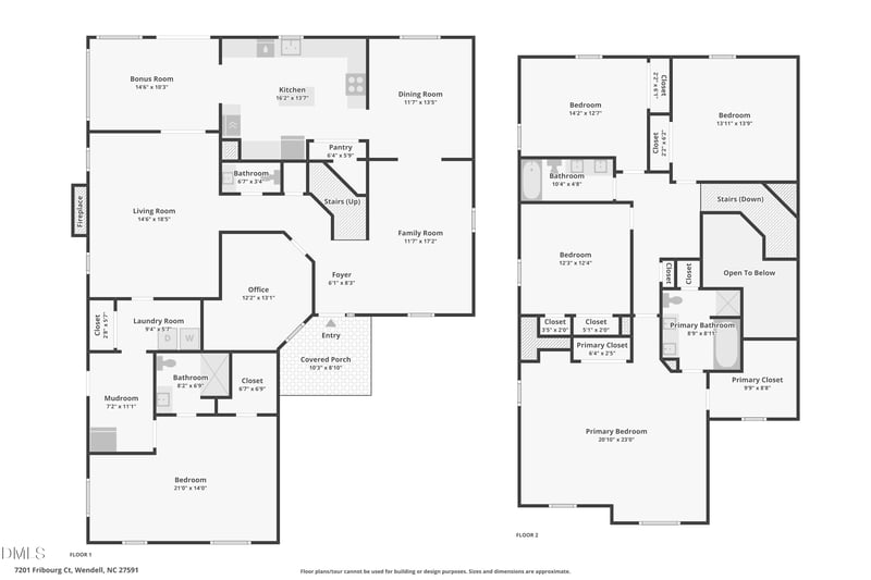 Listing details for 7201 Fribourg Ct, Wendell, NC 27591 : OPEN HOUSE SATURDAY AND SUNDAY FROM 3 PM TO 5 PM! PRICED TO SELL QUICKLY! WELCOME HOME!! THIS BEAUTIFUL MULTI GENERATIONAL HOME FEATURES 5 BEDROOMS, 3 1/2 BATHS ON 1.46 ACRE CULDESAC LOT. FEATURING A LARGE GUEST/IN-LAW SUITE WITH A HUGE BEDROOM, FULL BATHROOM LARGE WALK IN SHOWER AND WALK IN CLOSET. FAMILY SIZED KITCHEN WITH BEAUTIFULLY CRAFTED CABINETS, ISLAND WITH STORAGE, STAINLESS STEEL APPLIANCES, DOUBLE WALL OVEN AND A HUGE WALK IN PANTRY, TWO STORY FOYER, BEAUTIFUL SUNROOM, DEN, FAMILY ROOM AND OFFICE DOWNSTAIRS. UPSTAIRS FEATURES A HUGE MASTER SUITE WITH DOUBLE VANITY SINKS, SEPARATE SHOWER, LARGE TUB, WALK IN CLOSET AND OVERSIZED CLOSET, 3 BEDROOMS AND A FULL BATHROOM WITH DOUBLE SINKS IN THE HALL WAY. NEW CARPET UPSTAIRS. OUTSIDE FEATURES A 46'X32' BASKETBALL/RECREATION COURT, DECK AND STORAGE BUILDINGS. GREAT NEIGHBORHOOD! NO CITY TAXES! NO HOA! LOT OF HOME FOR THE PRICE! NEW HVAC UNIT INSTALLED IN 2025. FRONT PORCH SWING. FRUIT TREES. PLAYGROUND SET. WALKING DISTANCE TO WENDELL MIDDLE SCHOOL. WASHER, DRYER, TWO REFRIDGERATORS, STORAGE BUILDINGS AND SWINGSET CONVEY WITH HOME. SOLD AS IS.