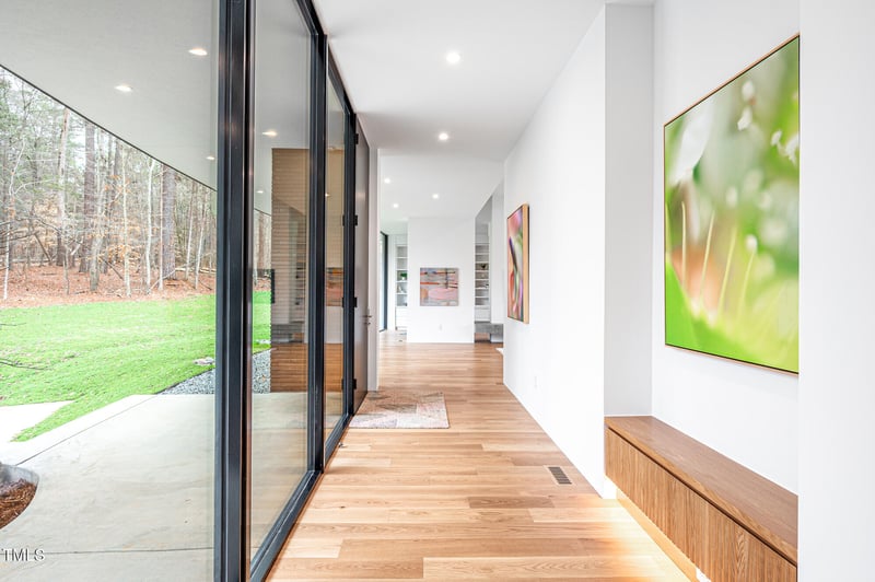 Listing details for 721 Jones Ferry Rd, Chapel Hill, NC 27516 : This gem is back on market due to buyer circumstances shifting! Appraisal and inspection were just fine - available upon request. 721 Jones Ferry Road is a one-of-a-kind modern masterpiece, designed by award-winning local architect Philip Szostak. This NC modernist featured home is on 4 acres, 5 minutes from UNC & every inch boasts innovative design. High ceilings, skylights, and ribbon windows allow natural light and generous views of University Lake. Sleek modernism retains functionality with hidden pantries and bookcase doors, refrigerated and charging drawers, secret drawers in nearly every room, a bonus hidden laundry room, and an art-screened jewelry rack. Enjoy the height of luxury with heated floors, a recessed airbath tub & heated back, hot tool bins, voice automated luxor shades, illuminated mirrors, and smart audio. Nearly 600square feet of pre-plumbed and heated space exist downstairs to make your own!