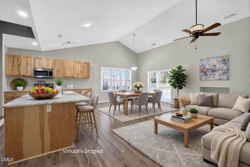 Listing details for 7252 Beau View Dr, Wendell, NC 27591 : Move-in ready with ~5 acres! Don't miss this beautifully updated, light-filled house. The kitchen is the heart of the home, and this one is a stunner! Natural HICKORY CABINETS, gleaming Rio Aura QUARTZITE countertops, WALK-IN PANTRY and a POT FILLER! Charming FARMHOUSE SINK sits atop the huge Kitchen Island open to the flow of the living areas. Step outside through adjacent sliding doors to a private TREE-LINED backyard. FRESHLY PAINTED interior. Mostly MAIN-LEVEL LIVING with 3 bedrooms and 2 and a half bathrooms. The primary bedroom has TWO WALK-IN CLOSETS and an en suite primary bath featuring dual vanities and walk in shower. Step upstairs into the HUGE BONUS ROOM with access to walk in attic space. Attached TWO CAR side-load garage with room for additional storage or workspace. Feels private while also being close to all fast-growing Wendell has to offer. All of this with NO HOA!