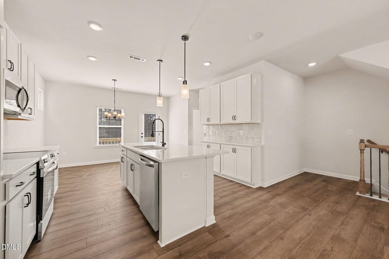 Listing details for 726 Orchard Vista Cir, Raleigh, NC 27606 : Smith Douglas Homes proudly presents the Radcliffe at Helmsley, a rare chance to claim a coveted end-unit residence where privacy meets premier accessibility. Situated just moments from the vibrant Fenton district, this home offers more than just a convenient commute; it places you on the doorstep of Raleigh's finest dining, shopping, and entertainment. Whether you are catching a movie, enjoying a sunset dinner, or simply heading to work, living here means spending less time in traffic and more time enjoying the lifestyle you have earned. The unique end-unit positioning floods the interior with natural light, creating a bright and airy atmosphere that truly sets this home apart from the rest. Inside, the residence is designed to impress with a blend of modern style and everyday comfort. The heart of the home is an upgraded kitchen that serves as the perfect culinary stage, featuring striking 42-inch cabinetry, quartz countertops, gleaming stainless steel appliances, and a sprawling island that naturally becomes the gathering spot for friends and family. Upgraded luxury vinyl plank flooring runs seamlessly across the lower and second levels, providing durability without sacrificing elegance. With blinds already installed throughout, the home offers immediate privacy and style, allowing you to settle in the moment you receive the keys. The layout encourages effortless entertaining, whether you are hosting a dinner party inside or stepping out to enjoy the expansive outdoor living space that offers a private oasis in the city. Functionality defines the three-story design, which includes four spacious bedrooms tailored to fit a dynamic life. The lower level features a private bedroom complete with an ensuite bath, offering the ultimate flexibility for a secluded guest suite, a quiet home office, or a dedicated space for multi-generational living. Upstairs, the owner's suite provides a luxurious escape from the day, highlighted by a large walk-in shower. Beyond its appeal as a primary residence, this property represents a savvy financial move; it is investor-friendly with zoning that supports Airbnb and short-term rental use. This is a rare combination of luxury, location, and income potential.