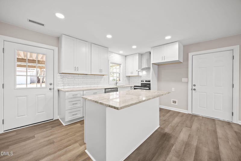 Inside, you'll find all-new LVP flooring, fresh interior paint, and updated light fixtures that give the space a clean, modern feel. The fully renovated kitchen is the heart of the home, featuring granite countertops, stainless steel appliances, a tile backsplash, new cabinetry, and a large island perfect for cooking, gathering, or casual dining.