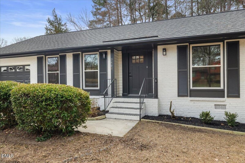 Listing details for 7408 Fox Rd, Raleigh, NC 27616 : There's an undeniable charm to a classic ranch home; practical, inviting, and effortlessly livable. This freshly renovated single-level residence captures that spirit while delivering the modern updates today's buyers expect, all set on a spacious corner lot in a highly convenient North Raleigh location. Inside, the home has been thoughtfully refreshed from top to bottom. Brand new oversized windows throughout. New luxury vinyl plank flooring runs throughout, offering a clean, contemporary look paired with everyday durability. Fresh interior paint in a soft, versatile palette creates a bright, cohesive feel that makes each space feel open and welcoming. The kitchen has been tastefully updated with new cabinetry, elegant quartz countertops, and stylish light fixtures, blending function and design in equal measure. The bathrooms have also been renovated with updated finishes and fixtures, giving them a crisp, modern appeal. Every detail from the lighting to the finishes has been selected to create a move-in-ready home that feels both polished and comfortable. A one-car garage adds convenience and extra storage, while the generous corner lot provides space to spread out, whether for outdoor gatherings, gardening, or simply enjoying a bit more breathing room. Even better, there's no HOA, offering flexibility and freedom that's increasingly rare. Location is another standout feature. With quick access to I-540 and Capital Boulevard, commuting around the Triangle is simple and efficient. You're just minutes from shopping and dining at Triangle Town Center, outdoor adventures at Durant Nature Preserve and Falls Lake, and all the restaurants, culture, and energy of Downtown Raleigh. For those seeking the ease of one-level living, thoughtful renovations, and a prime Raleigh location without restrictive oversight, this home offers an exceptional opportunity.