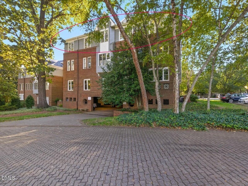 Listing details for 741 Bishops Park Dr #304, Raleigh, NC 27605 : Picture yourself in a tree house right in the middle of the city! Light-filled corner penthouse in elevator building. Cathedral ceilings in main living area and primary suite. Three bedrooms, updated kitchen with carrara marble counters. Wood-burning fireplace and built-ins in living room. Beautiful sunroom off main living space. One assigned parking place in garage. Adjacent to Fred Fletcher Park, just steps to The Village District and Five Points.