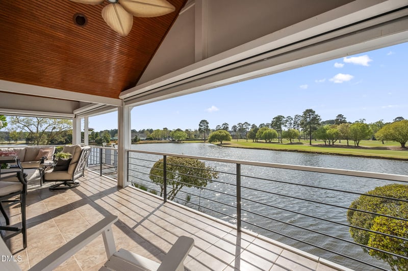 Listing details for 743 Crabtree Crossing Pw, Cary, NC 27513 : Arguably the best views in all of Preston! Stunning panoramic waterfront and golf course views of Preston Lake, Preston Clubhouse, Highlands #1, Meadows #1 & #18 and Fairways #18 all from the covered back porch. Spacious family room features cathedral ceiling, built-ins & 2-sided gas log fireplace with stone surround. Updated kitchen offers custom cabinetry, stainless steel appliances & granite countertops. 1st floor primary suite includes vaulted ceiling gas log fireplace, updated bathroom with granite top dual vanity & oversized tile shower + walk in closet. Hardwoods throughout the main living areas. Lives like a 3 bedroom home with bedroom + full bath, flex space & bonus/loft upstairs. All appliances convey. 2 car garage with epoxy floor. Back porch includes fireplace, tv & automatic retractable screens.