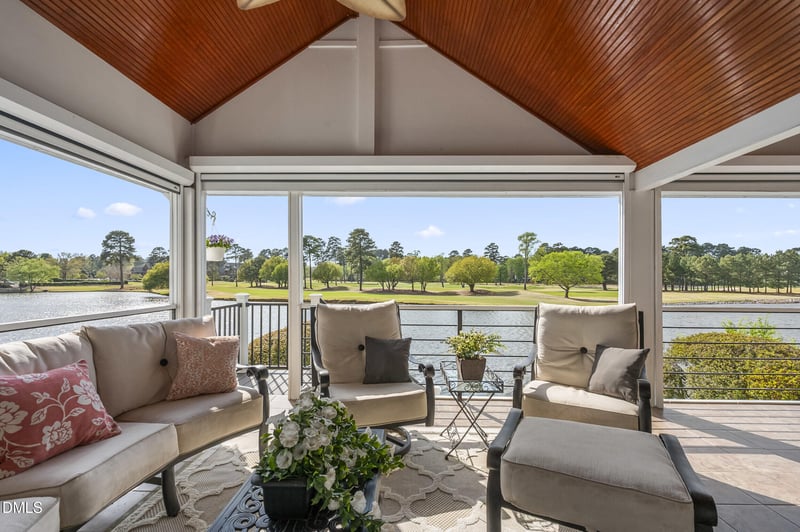 Listing details for 743 Crabtree Crossing Pw, Cary, NC 27513 : Arguably the best views in all of Preston! Stunning panoramic waterfront and golf course views of Preston Lake, Preston Clubhouse, Highlands #1, Meadows #1 & #18 and Fairways #18 all from the covered back porch. Spacious family room features cathedral ceiling, built-ins & 2-sided gas log fireplace with stone surround. Updated kitchen offers custom cabinetry, stainless steel appliances & granite countertops. 1st floor primary suite includes vaulted ceiling gas log fireplace, updated bathroom with granite top dual vanity & oversized tile shower + walk in closet. Hardwoods throughout the main living areas. Lives like a 3 bedroom home with bedroom + full bath, flex space & bonus/loft upstairs. All appliances convey. 2 car garage with epoxy floor. Back porch includes fireplace, tv & automatic retractable screens.
