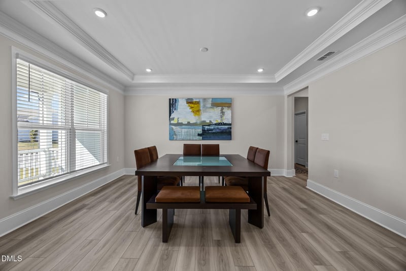 Listing details for 749 Marshall Farm St, Wake Forest, NC 27587 : LOCATION, LOCATION, LOCATION! Close to shopping, restaurants, schools, Heritage Golf Course, and scenic trails, this beautiful home truly has it all. Offering 6 bedrooms, 4.5 bathrooms, and 2 dedicated offices—including one tucked off the kitchen, ideal for household tasks or homework, and another with French doors for remote work—this home is designed for today's lifestyle. Inside, you'll find a 3-car garage with professional epoxy floors, a drop zone, designer lighting and fans, and California Custom Closets in both the main-level in-law/guest suite and the luxurious second-floor owner's suite. With no carpet anywhere, the home boasts durable LVP flooring throughout and generously sized rooms for comfortable living. The open floor plan is perfect for entertaining. The chef's kitchen features quartz countertops, a spacious island, upgraded stainless steel appliances, gas cooktop, convection wall oven and microwave, under-cabinet lighting, and a walk-in pantry. Step outside to relax on the screened porch or deck overlooking the flat, fenced backyard—a perfect spot for morning coffee or evening gatherings. Also, this home is protected by Home Team Pest Defense. The contract can be transferred to the buyer if they want the service. With too many upgrades to list, this home is a must-see. Come experience it in person—schedule a private showing today!!