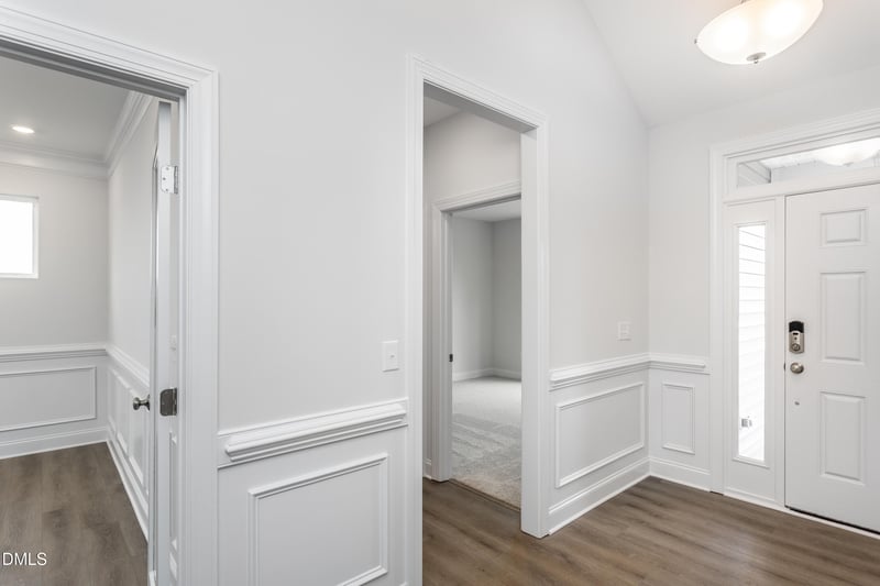 The inviting foyer is open to the second floor, creating a light-filled and welcoming first impression. The open-concept living areas feature durable and stylish EVP flooring throughout the main level. A designer kitchen anchors the home with crisp white cabinetry, quartz countertops, wall oven and microwave, cooktop, and generous workspace, flowing seamlessly into the main living areas and sunroom--perfect for relaxing or hosting guests year-round.