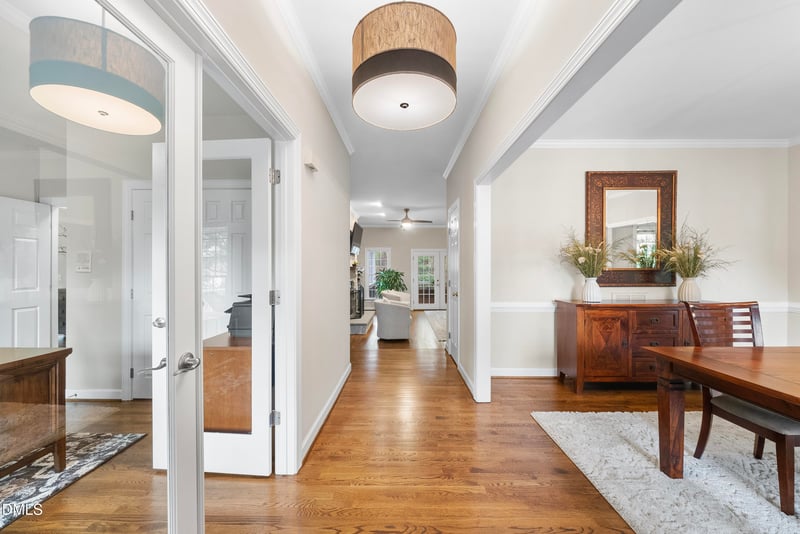Listing details for 7508 Tipsy Sq, Wake Forest, NC 27587 : Welcome to your private oasis nestled on a 1.4 acre cul-de-sac in the heart of Wake Forest. This thoughtfully designed modern Cape Cod offers a main floor primary suite, a dedicated home office, and two additional full bathrooms on main floor. The spacious chef's kitchen is the centerpiece of the home, featuring an impressive 111-inch island with a built-in JennAir gas cooktop - ideal for entertaining. The kitchen flows seamlessly into the living and dining areas, creating an open layout. French doors off the living room lead to a serene screened porch overlooking the beautifully landscaped backyard, complete with a professionally installed fenced garden with drip system and 12 raised beds. Upstairs you'll find two additional bedrooms, a full bathroom, and a walk-in attic with washer/dryer hookup and gas/electric available offering potential for a future in-law suite or bonus living space. Warm, welcoming and full of possibility, this home is ready for it's next family!