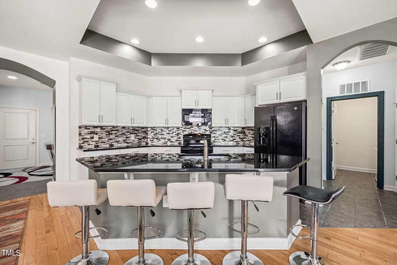 Listing details for 7528 Courtyard Pl, Cary, NC 27519 : Absolutely exquisite and impeccably maintained, this rare single-story ranch with a two-car garage offers refined luxury in a quiet West Cary setting. From the beautiful tile-floored entry and gleaming hardwoods to the arched entryways and coffered ceilings in the kitchen, dining area, and primary suite, every detail reflects thoughtful design and elevated craftsmanship. The open gourmet kitchen showcases tile flooring, a stylish backsplash, remote-controlled under-cabinet lighting, brushed nickel fixtures, and seamless flow into the dining space adorned with Somni battery-powered shades. A stunning enclosed sunroom with tile flooring extends the living space, while the private stacked-stone courtyard and professionally landscaped yard--featuring vibrant roses and hostas--create a serene outdoor retreat. The luxurious primary suite offers a massive custom-organized closet and spa-inspired bath with dual sinks, a large Roman tiled shower, and separate water closet. A versatile 12x10 flex room with window provides ideal space for a guest room or office. Major updates include a 4-month-old roof, tankless water heater, and newer dishwasher, along with an epoxy-finished garage and numerous designer touches throughout. This is a rare opportunity to own a beautifully upgraded home blending elegance, comfort, and timeless appeal in one of Cary's most desirable locations.