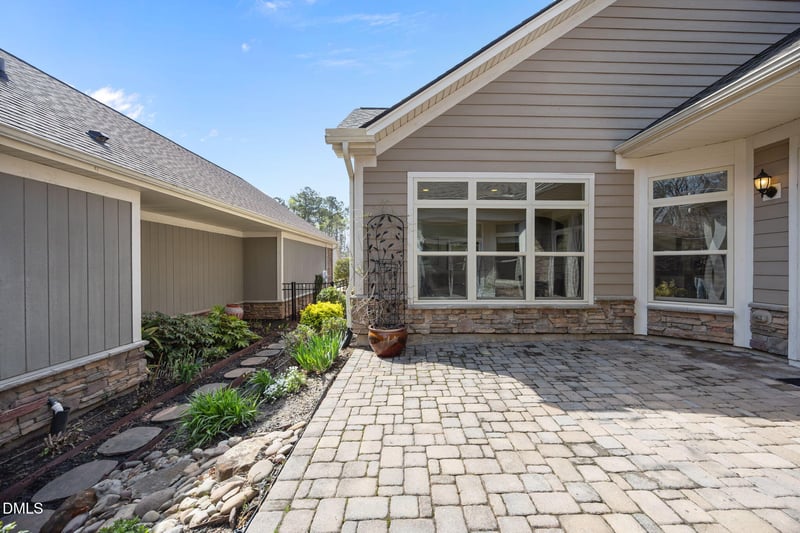 Step outside to the courtyard-style stone paved patio, a private and low-maintenance outdoor space perfect for relaxing or entertaining. It serves as a natural extension of the interior, offering a quiet place to enjoy fresh air and outdoor moments. A 2-car garage adds convenience and additional storage, completing the home's practical features.