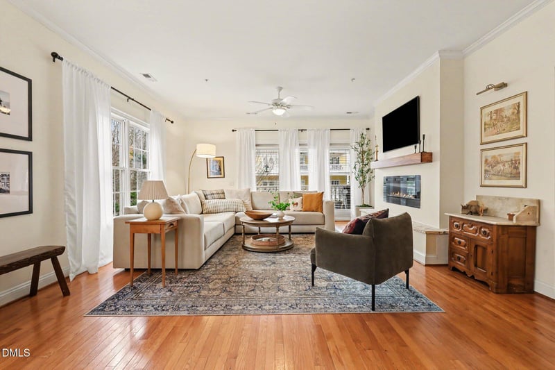 Listing details for 7530 Lead Mine Rd #202, Raleigh, NC 27615 : The Jewel to Convenient Living ! Beautiful Condo With So Many Upgrades ! PLUS Walk able to Greystone Village for Shopping, Eats and So Much More ! Enjoy the Custom Electric Fireplace and Stone Hearth, 2025 Guest Full Bath Updates, 2024 Kitchen Make Over to Include Quartz Countertops, Refinished Cabinets PLUS New SS Appliances. Spacious Primary Bedroom w/Added Closet System and French Door Access to Large Brick Balcony with Wooded Views. Wonderful Entry Foyer and Office/Flex Room with Glass Doors. Open Dining and Family Room Floor Plan with Hardwoods & Abundant Windows for Natural Light and Doors to Brick Balcony. Great for Entertaining ! Guest/Secondary Bedroom with Improved Beautiful Full Bath and Laundry. Loads of Storage with Interior Closets, Balcony Storage and Parking Garage Secured Storage Space. Parking Garage below with Secured Entry and Elevators. Assigned Parking and Lots of Additional Parking. 2022 Roof. HOA to Power Wash & Paint Bldg Exterior & Balcony Coming this Spring !