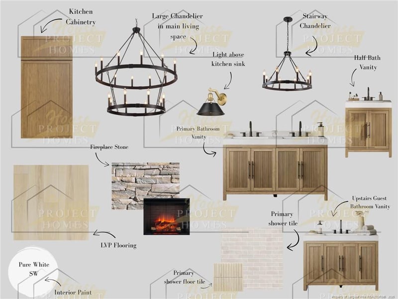 Listing details for 7605 Bellhop Dr, Fayetteville, NC 28306 : Discover this custom-built new construction home by House Project, offering a truly one-of-a-kind rustic-modern design in the desirable Jack Britt district. This striking two-story home showcases a bold dark exterior featuring black board and batten accents, stone detailed garage, and black windows—a standout architectural style that sets it apart from anything else in the area.Step inside to an open-concept layout featuring expansive ceilings! A Stone fireplace that anchors the living space, and a statement wagon wheel chandelier leading into a beautifully designed kitchen with custom frameless cabinetry and black quartz countertops. A functional mudroom with built-in storage provides convenience and functionality. The primary suite is conveniently located on the main level and offers a spacious walk-in closet and beautifully designed bathroom with high-end finishes. Upstairs, you’ll find two additional bedrooms, a dedicated office, and a versatile bonus room—ideal for a playroom, media space, or guest retreat. Out back, enjoy a covered patio overlooking a large backyard, perfect for relaxing or entertaining. Every detail throughout the home reflects thoughtful design, quality materials, and a cohesive rustic-modern aesthetic. If you’re seeking a home that stands out for its design, craftsmanship, and location, this custom House Project build is one you won’t want to miss.