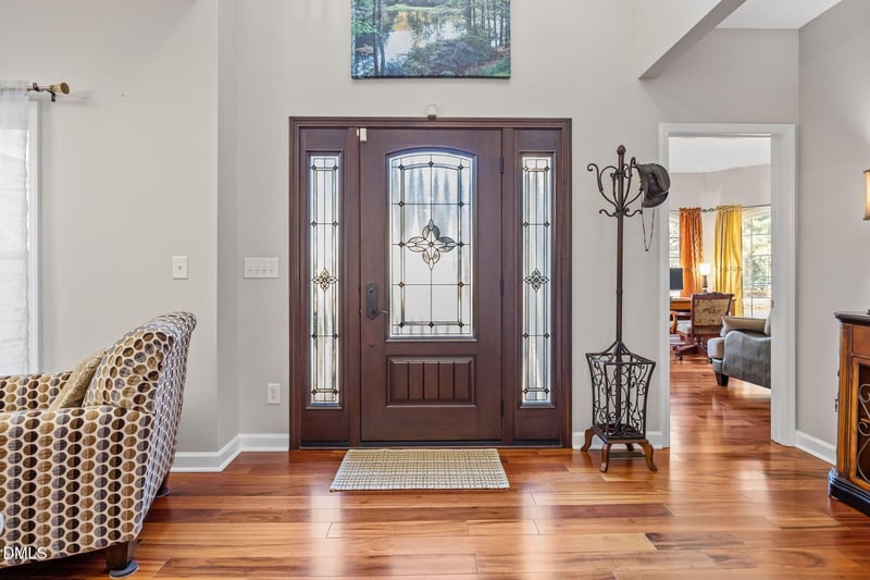 Listing details for 7616 Lake Wheeler Rd, Raleigh, NC 27603 : Tigerwood Luxury Retreat -- Rare opportunity to own a custom-built Schumacher Homes residence on nearly 3 private wooded acres in Raleigh with no HOA. Nestled within a premier luxury home district near Westbury, The Sanctuary, and Enchanted Oaks, this property offers the perfect blend of privacy, flexibility, and convenience. Designed for both everyday living and entertaining, the home features 4 bedrooms, 3.5 bathrooms, and a spacious open-concept layout with a main-level primary suite and dedicated office. The chef's kitchen is ideal for gatherings, showcasing granite countertops, a large island, and abundant prep space. What truly sets this home apart is the rare tigerwood exotic hardwood flooring--a striking, high-end feature you won't find in typical homes--paired beautifully with a statement stone fireplace and premium finishes throughout. Additional highlights include a lifetime-warranty luxury entry door, Generac whole-home automatic generator, and stand-up crawl space. Upstairs offers three additional bedrooms, a loft, and an oversized bonus room with flexibility for a secondary suite, media room, or office. The expansive 2.78-acre wooded lot provides potential for large gatherings, a small farm or animals, along with space for a workshop, detached garage, or ADU--all without HOA restrictions. Enjoy 2-minute access to Lake Wheeler, Costco, and I-540, with RTP and Downtown Raleigh just minutes away. A rare blend of luxury, land, and lifestyle.