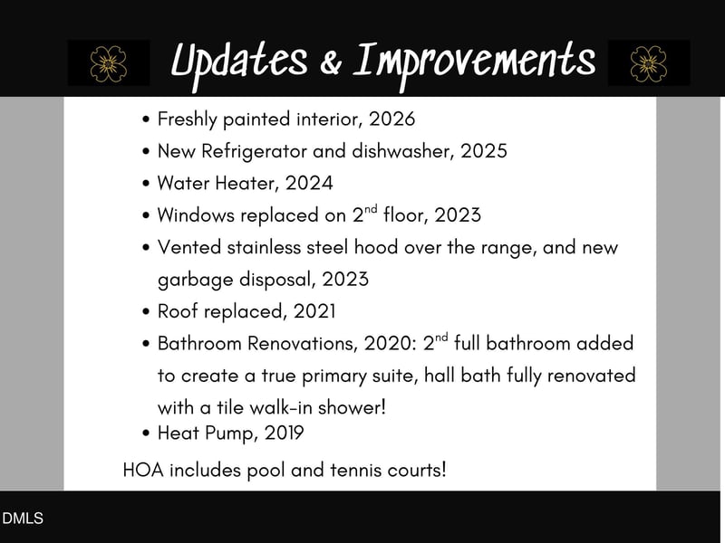 Listing details for 7715 Ohmann Ct, Raleigh, NC 27615 : Rare opportunity in Crown Oaks! This move-in-ready 3-bedroom, 2.5 bath townhome stands apart with a true primary suite featuring its own full bath which is a rare and highly desirable find in this neighborhood! Freshly painted interior and stylish LVP flooring give the home a clean, modern feel, while major updates offer peace of mind for years to come: second-floor windows (2023), water heater (2024), stainless steel refrigerator and dishwasher (2025), new garbage disposal (2023), vented stainless steel hood over the range (2023) and new roof (2021). The 2019 heat pump is serviced 2x/year. Bathrooms were fully renovated in 2020. Tucked on a quiet cul-de-sac in prime North Raleigh, this home is just minutes from North Hills, I-440, I-540, shopping, dining, Shelley Lake, and Lafayette Village. Enjoy community amenities including a pool, tennis courts, and low-maintenance living in one of Raleigh's most convenient locations.