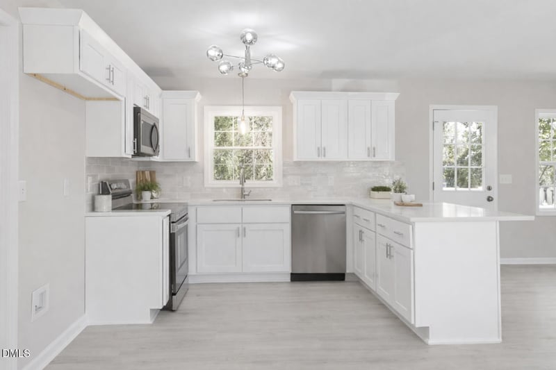 Listing details for 8 Bair Cir, Durham, NC 27704 : Cute as a button Ranch located on a quiet Cul-De-Sac in Village Green. Features a beautiful kitchen with quartz countertops, tile backsplash and stainless steel appliances. Wide plank laminate hardwood flooring throughout main living areas; PLUSH bedroom carpet and new paint. Tons of exterior storage with wired shed and fenced in backyard. Move in and Enjoy. Staged photos for illustration only, to show homes potential.