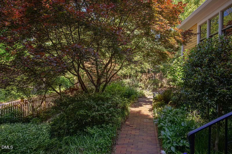 Listing details for 8 Cobb Ter, Chapel Hill, NC 27514 : Step through the picket gate into a world of timeless elegance in the historic Cobb Terrace subdivision. This 4-bedroom, 3-bath Craftsman welcomes you with a classic covered front porch and original heart of pine flooring that glows with history. The main level is designed for both grand entertaining and quiet moments, featuring a library-like living room (which offers flexibility as a main-level bedroom) and a cozy family room anchored by a fireplace and custom built-ins. The heart of the home is an open kitchen boasting a five-burner gas range, a prep island, and a sunny breakfast nook. Retreat to the spectacular sunroom, where walls of windows frame the lush gardens, and a vented fireplace makes it a year-round sanctuary. Upstairs, the primary suite offers a rare, attached sun nook with treetop views and an expansive walk-in closet with a built-in dresser. There are two additional bright bedrooms on the 2nd floor. The basement level adds incredible versatility to this historic gem. Featuring both interior and private exterior entrances, the space includes a bedroom, large family room, laundry, and its own kitchen--an ideal setup for a guest apartment, income-producing rental, or multi-generational suite. Outside, the grounds are a landscaped masterpiece of terraced gardens, brick pathways, and stone walls. Enjoy the ultimate downtown lifestyle, just steps from campus, local dining, and boutique shopping.