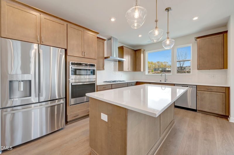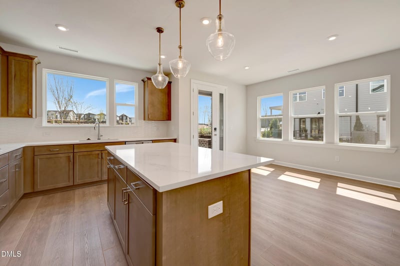 Listing details for 8 Quietwood Way, Pittsboro, NC 27312 : Corner lot. Great Lawn views. Move-in ready. One of the best-positioned homes in Chatham Park. Welcome to 8 Quietwood Way in Townes at NoVi, where natural light, privacy, and open green space views come together in a way few townhomes offer. This Wilson plan stands out immediately with additional corner-unit windows, filling the home with light and creating a bright, open feel throughout. The main level flows effortlessly, anchored by a designer kitchen featuring quartz countertops, stained cabinetry, a large island, gas cooktop, wall oven, and modern, timeless finishes. The living area centers around a sleek linear fireplace and opens visually to the NoVi Great Lawn, offering rare, unobstructed views that make the home feel more spacious and connected. Upstairs, the primary suite delivers a spa-like retreat with a tiled walk-in shower and bench seating, along with a versatile loft and two additional bedrooms, ideal for working from home or hosting. Why this home stands out: Corner lot with added privacy and extra windows Direct Great Lawn views, a rare find in NoVi Move-in ready, no construction delays Upgraded finishes already included Prime location: Minutes to MOSAIC at Chatham Park, trails, parks, YMCA, and easy access to Chapel Hill, Durham, RTP, and Jordan Lake Homes with this level of privacy, views, and upgrades in Chatham Park are limited. Schedule your showing today and see why this one stands apart.